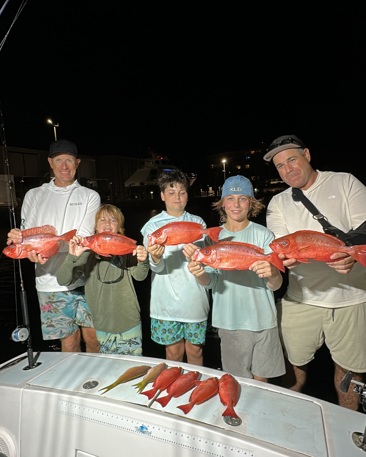 Mahi mahi are the chameleons of the ocean, flashing brilliant blues and greens when excited. These fish typically run 15 to 30 pounds but can get up to 60. You'll find them in warm, offshore waters, often near floating debris or weed lines. Summer's the peak season when water temps are warmest. Anglers love mahi for their acrobatic fights and delicious meat. These fish are fast growers and great fighters, making them a sustainable and fun target. To catch mahi, try trolling with ballyhoo or squid near floating structure. Here's a local tip: when you hook one, keep it in the water to attract others – mahi often travel in schools. Watch for frigate birds diving, as they often lead you to feeding mahi. Whether you're after a trophy bull or just want some great fish tacos, mahi mahi are always a crowd-pleaser on our charters.